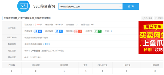 1.解决方案:网站在我们第一次打开的时候就发现了打开时间超过了30秒的现象,这样就体现出等网站关键词到达首页以后的跳出率会g,客户一直在等你网站打不开会直接关闭了,这样就毫无意义的展现了,我们在ping一下他的服务器发现时间超过了100ms了也是严Z的超时,所以我们及时于客户沟通让其调整服务器这一块避免造成网站降权现象的发生。