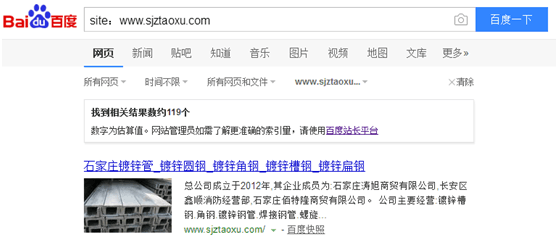 1.解决方案:标题我们发现是有问题的他原来的是这样的:石家庄镀锌管_石家庄镀锌角钢_石家庄镀锌槽钢,里面不包含我们所有要做的关键词,因为我们知道网站的标题是承载要做的关键词的使排名更快的出现所有我们修改完是这样的:石家庄镀锌管_镀锌圆钢_镀锌角钢_镀锌槽钢_镀锌扁钢,这样的写法既包含了所有的关键词还拓展其他的主关键词,这也是为了后期的客户利益着想。